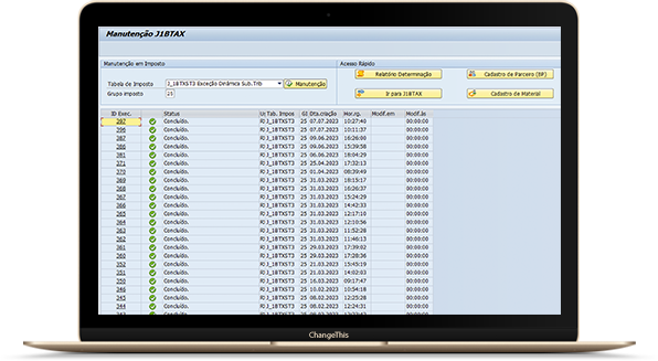 A ferramenta permite a manutenção individual ou em massa das Regras de Determinações de Impostos (J 1 BTAX), incluindo a geração de Registros de Condições. Os usuários têm liberdade para fazer manutenções de forma fácil, ágil e segura.